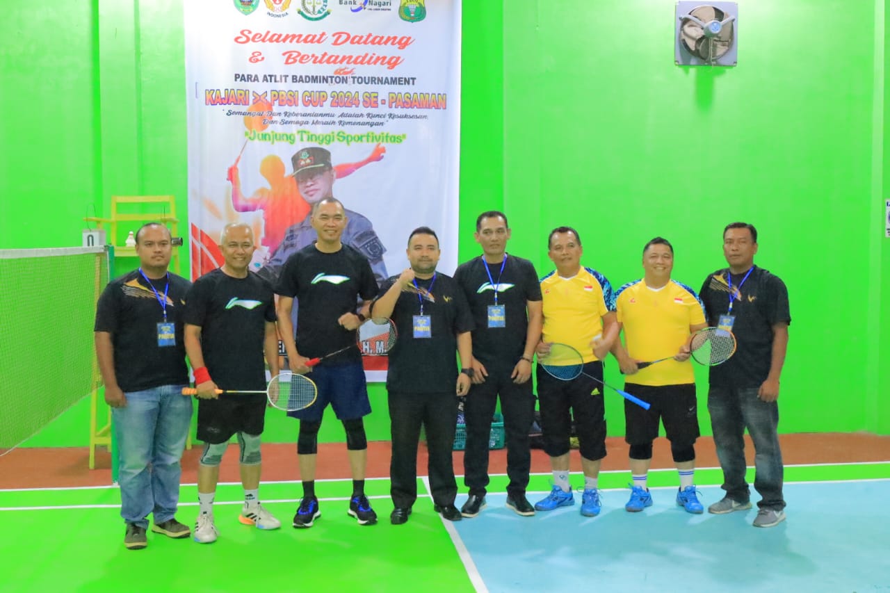 DinastiNews.Com | Pasaman – Bertempat di Hall olah raga Kemenag Lubuksikaping Pasaman ,dan disaksikan puluhan masyarakat , Turnamen Badminton Kajari – PBSI Cup di buka langsung oleh Kajari Pasaman Sobeng Suradal .SH.MH, didampingi oleh Pjs Bupati Pasaman H.Edi Dharma , Kakan Kemenag H.Yasri, Wakil Ketua DPRD Pasaman Eka Hariani Sandra , Ketua Koni Pasaman Tomy Irawan Sandra ,
