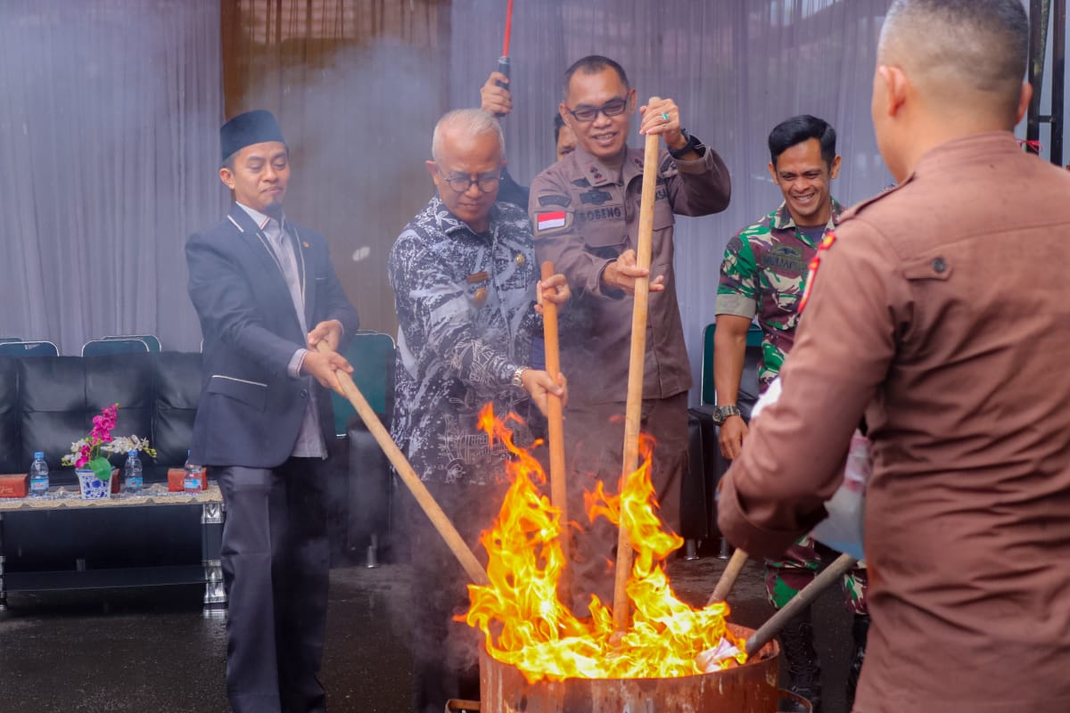DinastiNews.Com | Pasaman – Kejaksaan Negeri Pasaman gelar Pemusnahan Barang Bukti Perkara Tindak Pidana Umum Yang Telah Memiliki Kekuatan Hukum Tetap (Inkracht) Tahun 2024, Pada Hari kamis tanggal 21 November 2024 sekitar pukul 10.00 Wib, bertempat dihalaman Kantor Kejaksaan Negeri Pasaman. yang dipimpin langsung oleh Kajari Pasaman Sobeng Suradal, SH, MH ,didampingi oleh Pjs Bupati Pasaman ,H.Edi Dharma ,