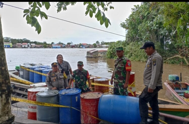 Kapolsek Suhaid IPDA Suryadi membenarkan, jika pihaknya bersama anggota TNI mengamankan sebanyak 48 drum minyak illegal.