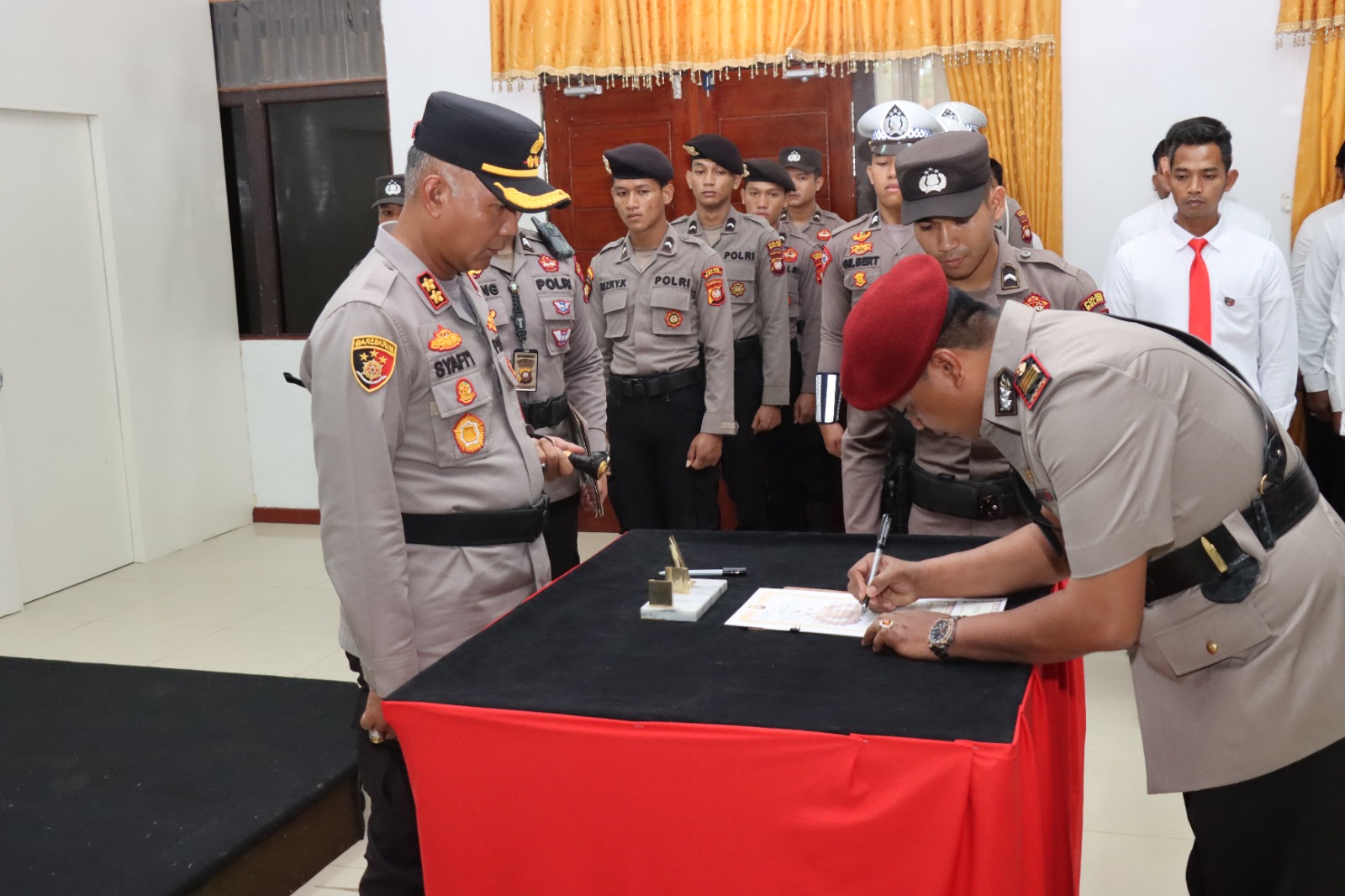 Dinastinews.com – Melawi. Polres Melawi Polda Kalbar – Upacara pengangkatan dan pengambilan sumpah jabatan Kasatreskrim Polres Melawi di gelar di aula tribrata di pimpin langsung Kapolres Melawi AKBP Muhammad Syafi’i, S.I.K., S.H., M.H di hadiri Pejabat Utama, Ketua Cabang Bhayangkari ibu Nina Syafi’i beserta pengurus serta pejabat yang akan pengangkatan jabatan, sabtu (18/1)