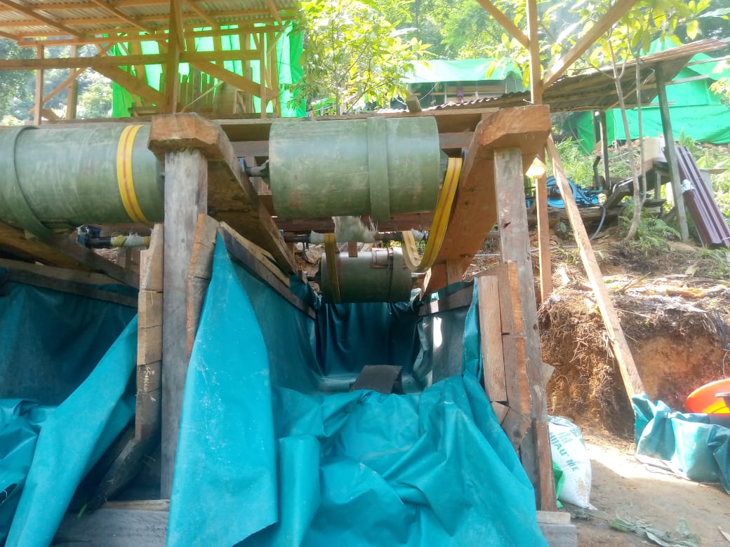 “Mereka bekerja juga menggunakan beberapa mesin Gelondongan untuk menghancurkan batu hingga menjadi halus, agar mempermudah proses dulang emasnya bang”, tutupnya.