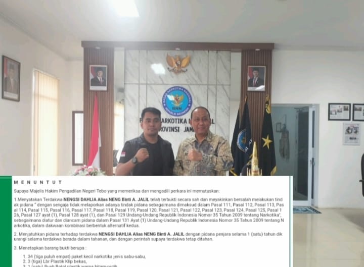 Hal ini pun di pertanyakan oleh sekretaris DPC GANN Tebo Doni yunata “sangat menyayangkan prihal putusan JPU cuman 1 tahun Pelaku penyalahgunaan narkoba harus di hukum Berat biar ada efek jera