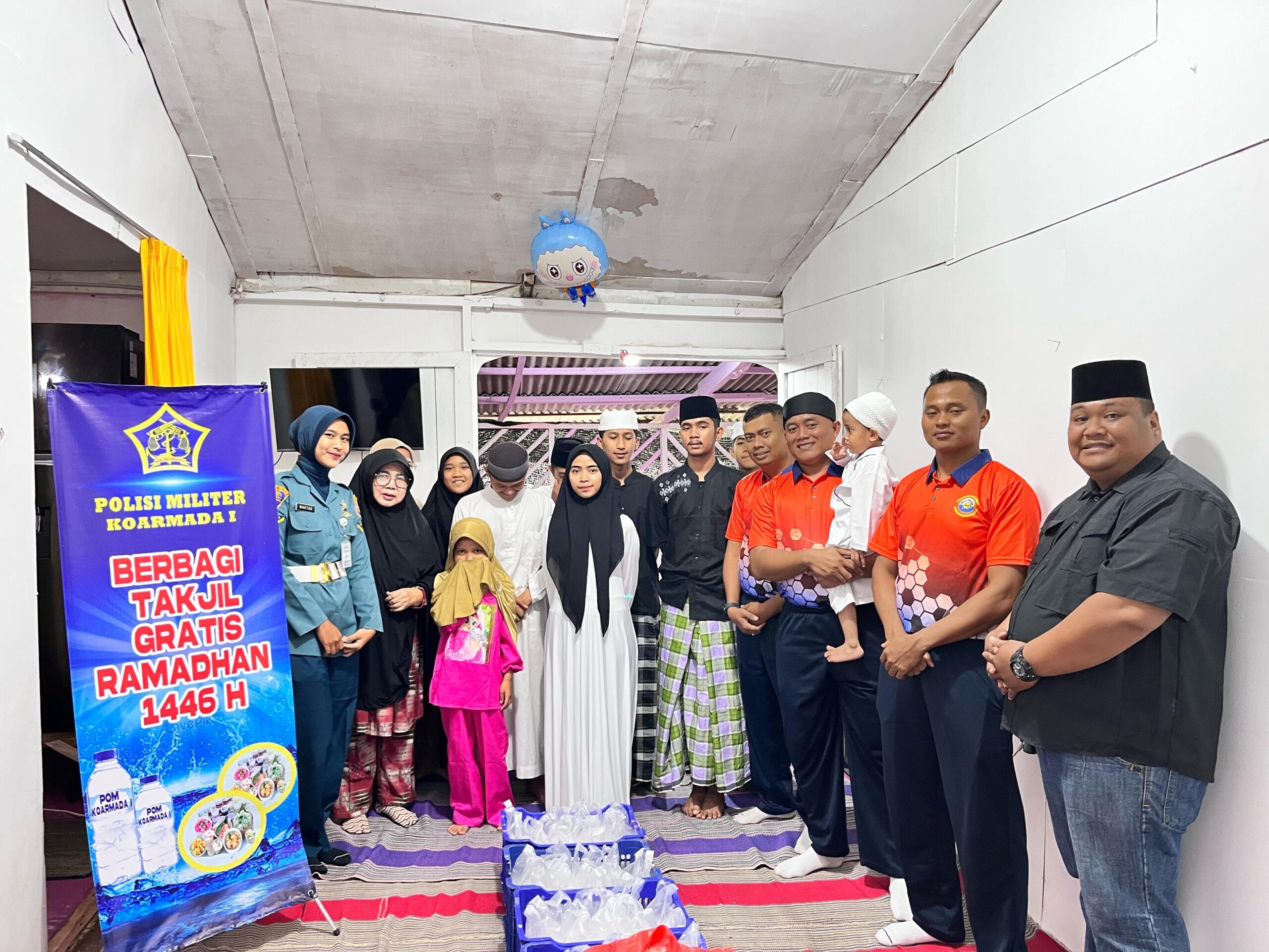 www.dinastinews.com|Tanjungpinang, Kamis, 20 Maret 2025 – Dalam semangat kepedulian dan kebersamaan di bulan suci Ramadan 1446 H, Polisi Militer Koarmada I Tanjungpinang menyalurkan sekitar 300 paket takjil kepada anak yatim di Panti Asuhan Al Fitrah, Jalan Salam, serta kepada jamaah di Masjid Hajar Aswad, Jalan Yos Sudarso, Tanjungpinang, pada Kamis (20/3/2025) Sore.