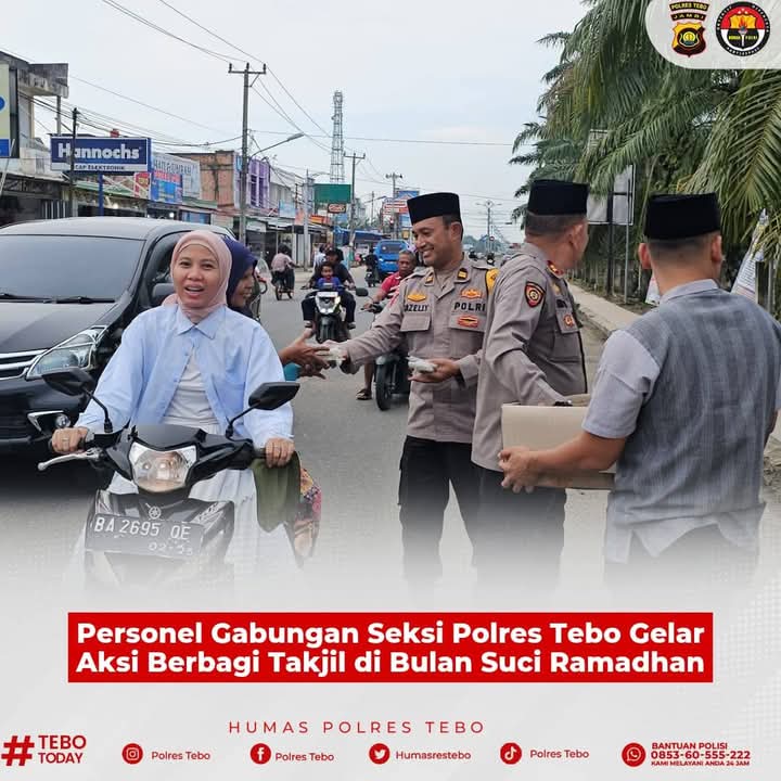 Dalam semangat kepedulian dan berbagi di bulan suci Ramadhan, personel gabungan Seksi Polres Tebo melaksanakan kegiatan berbagi takjil kepada para pengguna jalan. Kegiatan ini berlangsung pada Rabu, 26 Maret 2025, mulai pukul 17.00 WIB hingga selesai.