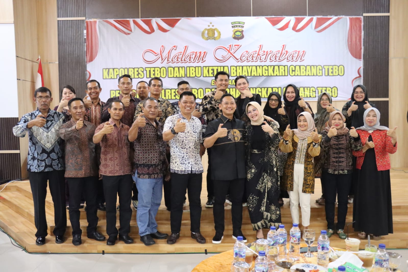 Suasana penuh kehangatan terasa di Aula Wira Astha Brata Polres Tebo, Sabtu malam (12/4/2025), saat Kapolres Tebo AKBP Triyanto, S.I.K., S.H., M.H. bersama Ibu Ketua Bhayangkari Ny. Niken Triyanto hadir dalam kegiatan Malam Keakraban bersama seluruh personil Polres Tebo dan Bhayangkari Cabang Tebo.