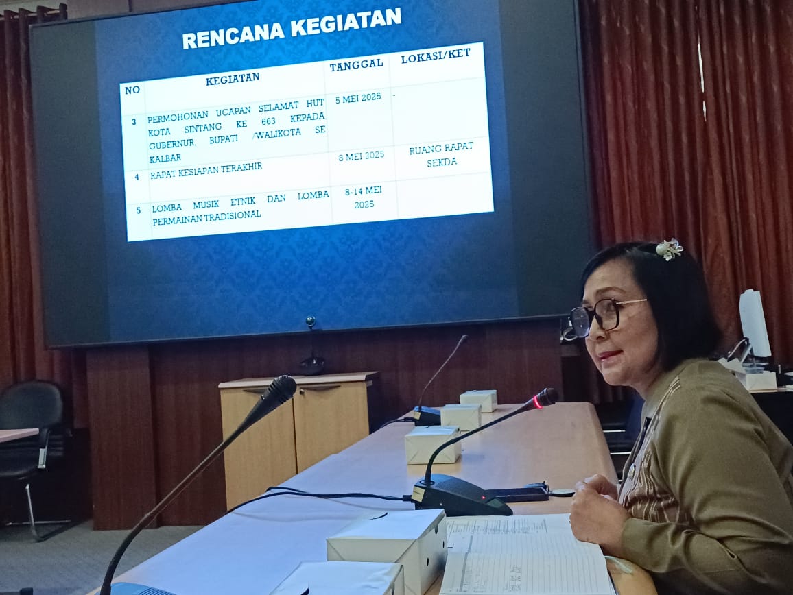 Hal tersebut disampaikan oleh Hendrika Kepala Dinas Pemuda, Olahraga dan Pariwisata Kabupaten Sintang saat mengikuti Rapat Persiapan Peringatan Hari Jadi Kota Sintang Ke 663 Tahun 2025 di Ruang Rapat Sekretaris Daerah Kabupaten Sintang pada Kamis, 24 April 2025. Rapat dipimpin oleh Asisten Administrasi Umum Harisinto Linoh dan dihadiri oleh Jajaran Pemkab Sintang dan perwakilan Keraton Sintang.