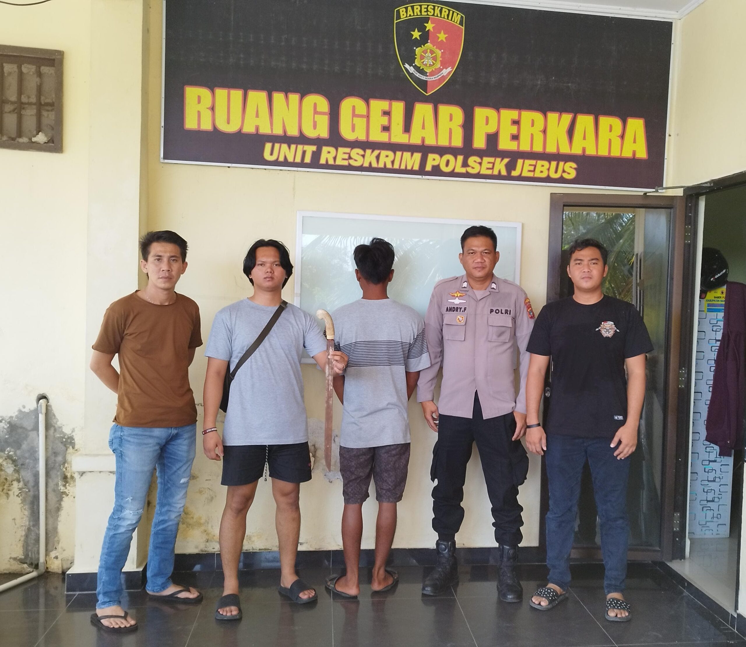 Polsek Jebus, jajaran Polres Bangka Barat, berhasil mengungkap kasus tindak pidana pengancaman yang terjadi di Dusun Penganak, Desa Air Gantang, Kecamatan Parit Tiga. Seorang pemuda berinisial M (21) diamankan pada Rabu pagi, 20 Mei 2025, usai dilaporkan melakukan pengancaman menggunakan senjata tajam terhadap warga bernama Supardi als Pardi.