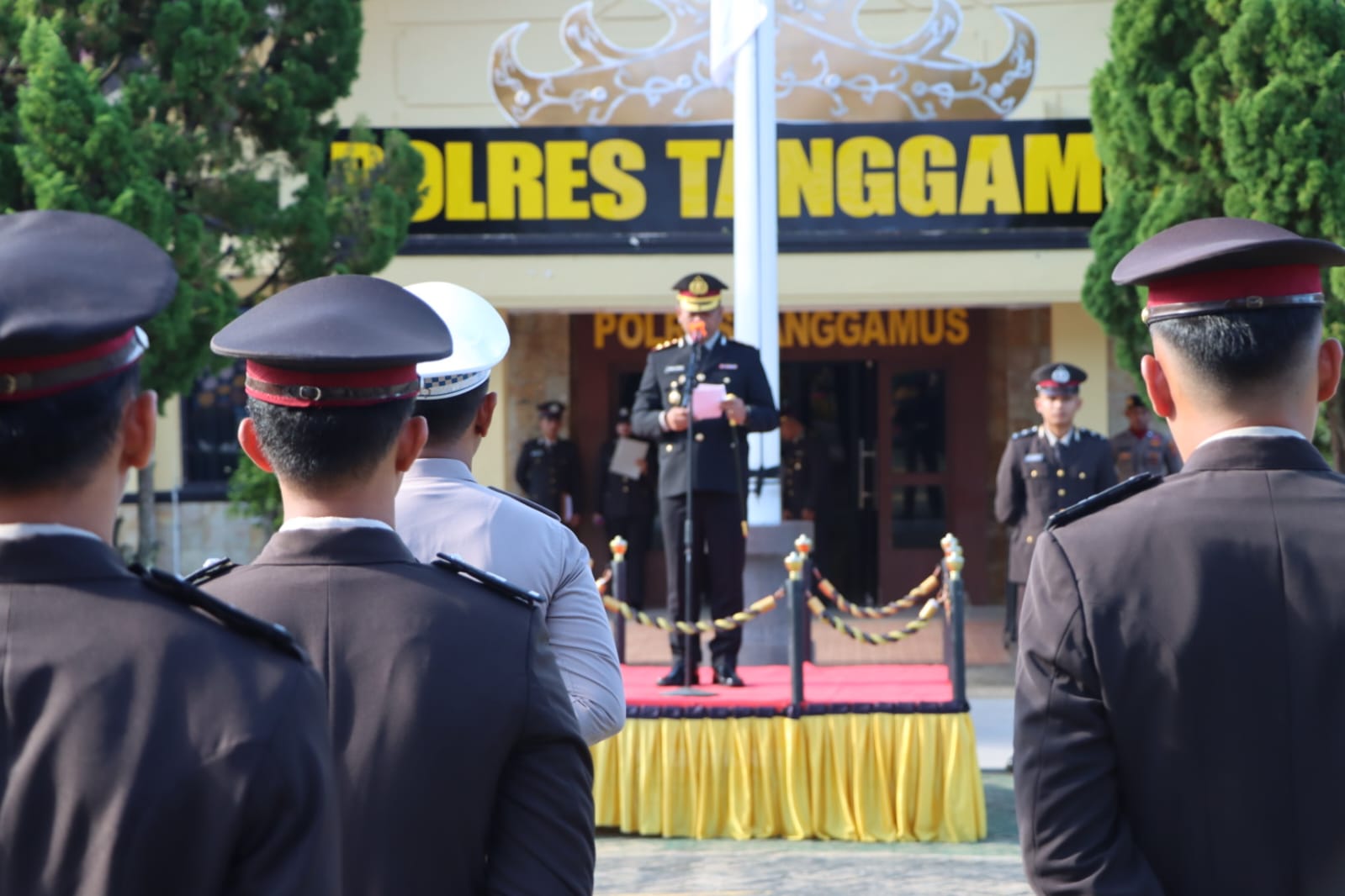 Bertindak selaku Inspektur Upacara, Kapolres Tanggamus AKBP Rahmad Sujatmiko, S.I.K., M.H., upacara dihadiri oleh seluruh jajaran personel Polres serta para ASN dan Kapolsek jajaran.