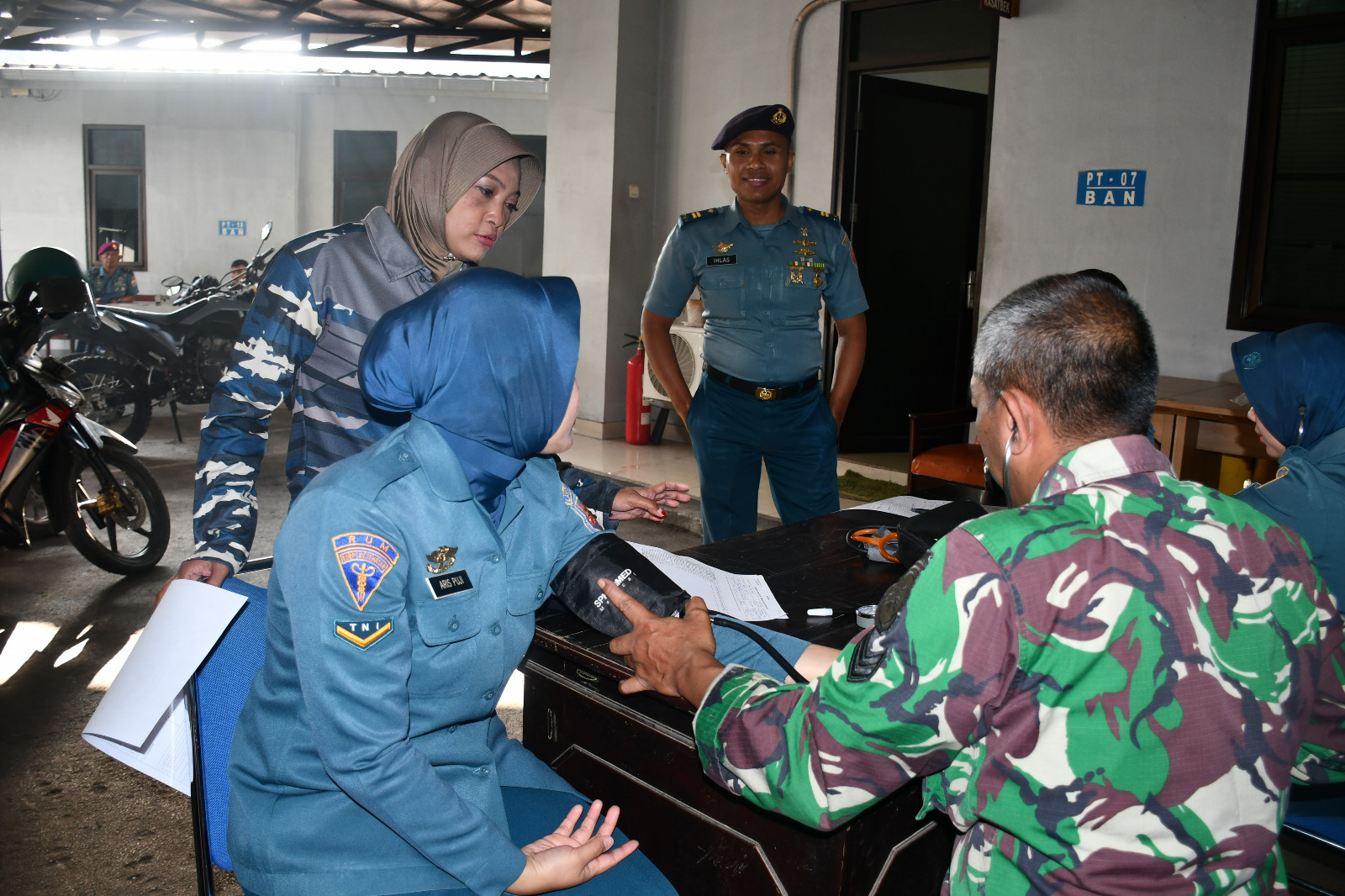 Personel Lanal Bandung yang terdiri dari Perwira, Bintara, Tamtama, dan PNS mengikuti rangkaian pemeriksaan kesehatan secara menyeluruh. Urikes ini mencakup pengisian blangko, pengukuran tensi, pengambilan sampel darah dan urine, pemeriksaan mata, radiologi, EKG, dan konsultasi dokter.