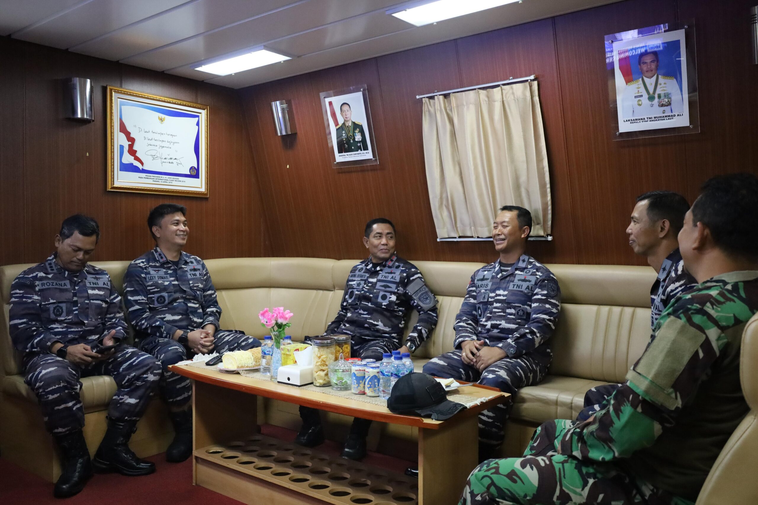 On board di KRI Bontang-907 sebagai kapal markas, Komandan Gugus Keamanan Laut Koarmada I Laksamana Pertama TNI Anung Sutanto, S.Sos., M.Si., M.Han., dengan didampingi Asintel Danguskamla I Kolonel Laut (P) Wahyu Rozana.