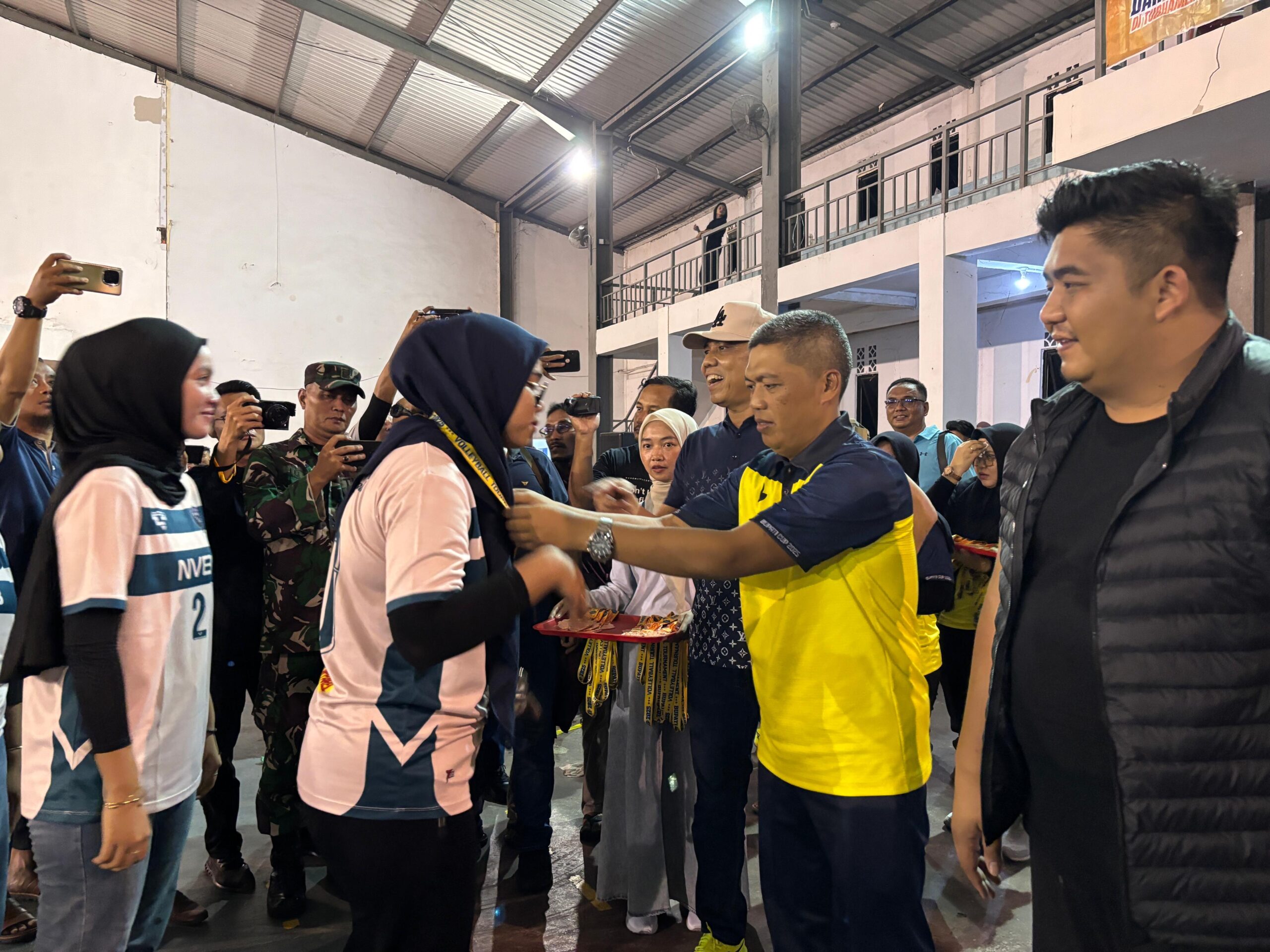 DinastiNews.com Bintan — Komandan Lanal Bintan Kolonel Laut (P) Dr. Eko Agus Susanto, S.E., M.M., mendampingi Bupati Bintan menutup Event Turnamen Bola Voli Bupati Cup 2025, dengan pertandingan grand final yang digelar di Lapangan GOR Demang Lebar Daun, Kijang, Minggu (01/06/2025).