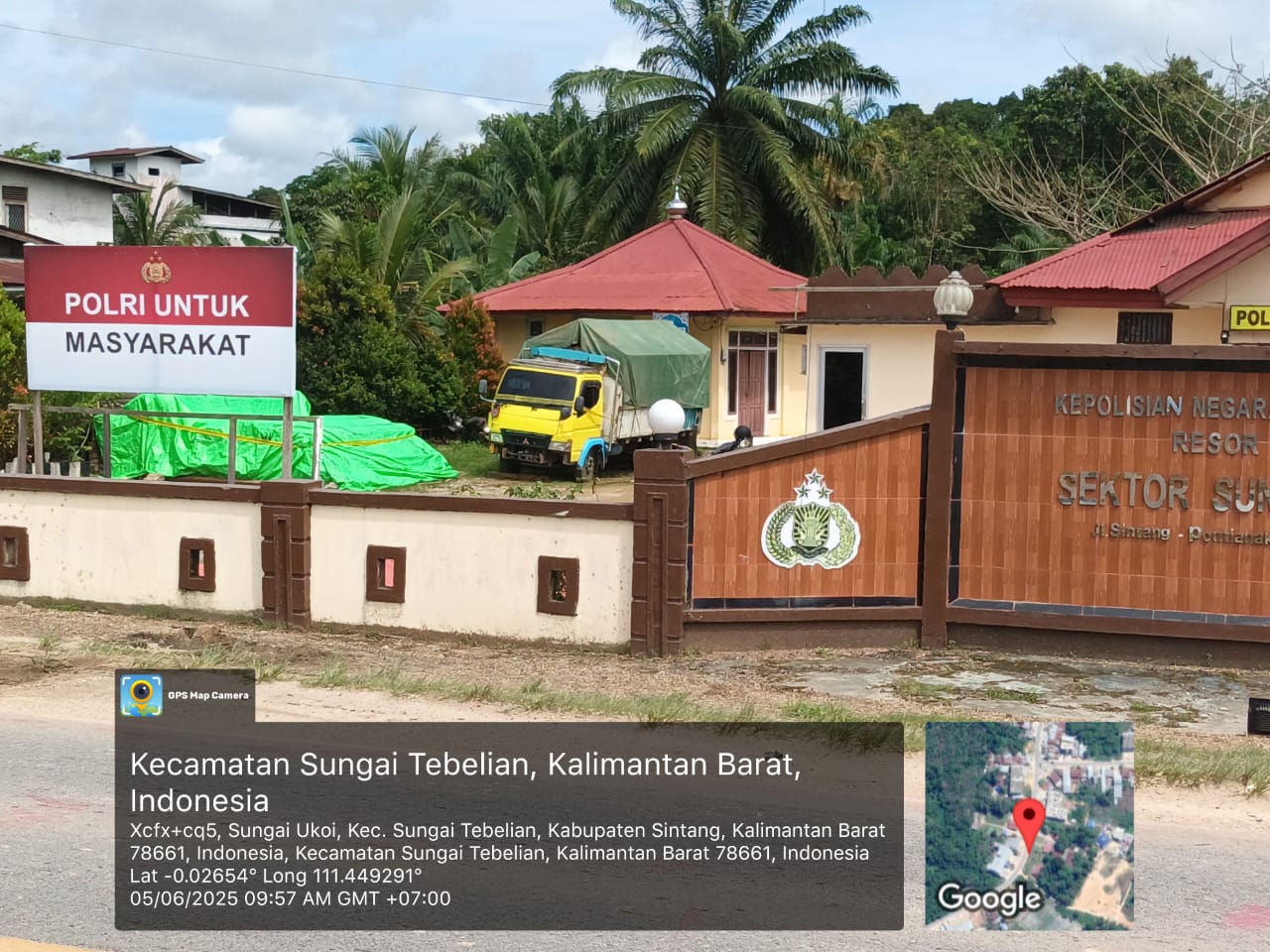 Berdasar bukti poto yang di abadikan beberapa awak media di Sintang.1 Unit truk bermuatan kayu tertutup terpal warna hijau dan tumpukan kayu masih terlihat di samping halaman Mapolsek Tebelian.
