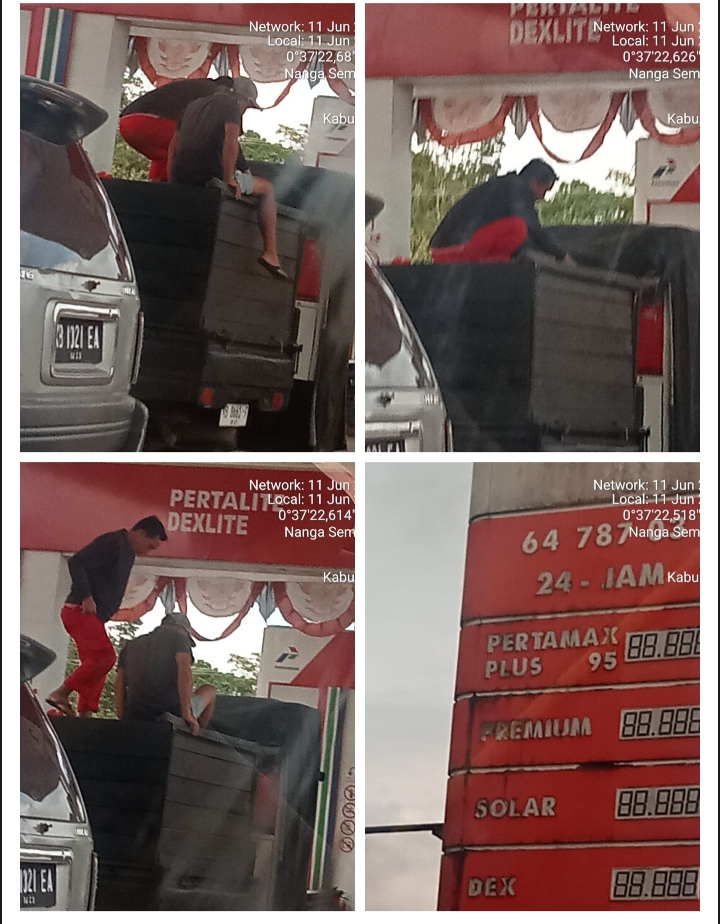 Di duga spbu 6478703 Nanga semangat Putusibau tekudak salah aturan BBM minyak bersubsidi, 11 Juni 2025,” saat awak media menjumpai salah satu masyarakat setempat yang enggan di publikasikan nama nya,,