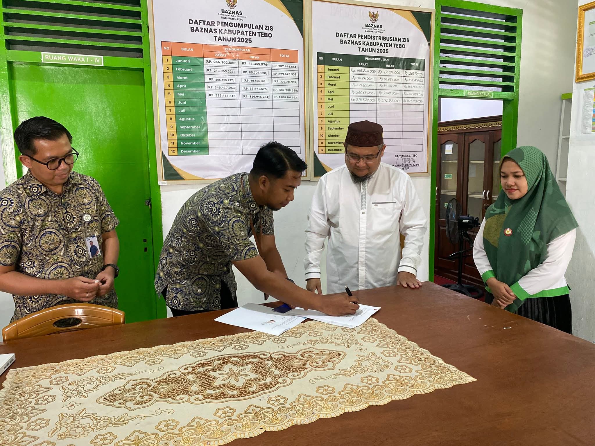 Badan Amil Zakat Nasional (BAZNAS) Kabupaten Tebo resmi menjalin kerja sama dengan BPJS Kesehatan Kabupaten Tebo melalui penandatanganan nota kesepahaman (MoU). Kesepakatan ini bertujuan untuk memperluas manfaat zakat, infak, dan sedekah dalam mendukung pemenuhan kebutuhan dasar masyarakat, khususnya pada aspek jaminan kesehatan bagi warga kurang mampu.