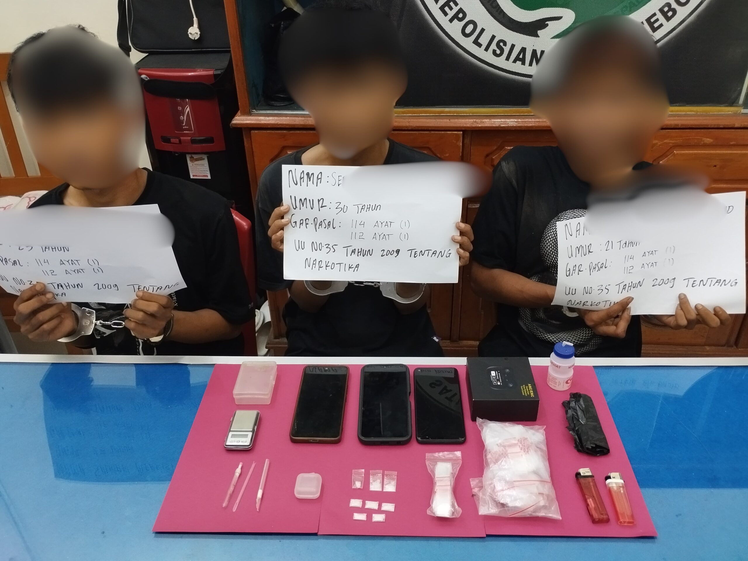 Tak berhenti di situ, sekitar pukul 15.50 WIB, polisi melakukan pengembangan dan berhasil menggerebek sebuah rumah di Kec. Tengah Ilir. Di lokasi ini, polisi menangkap tiga pelaku lain, yaitu SDC (30), SA (23), dan RSD (21).
