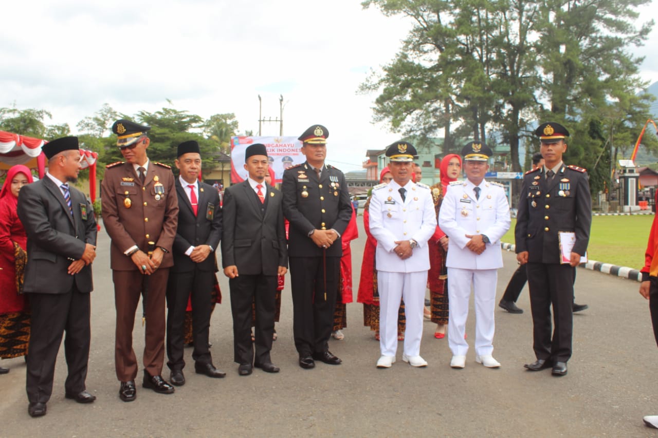 Tanpak hadir dalam upacara tersebut ,Wakil Bupati Pasaman Parulian Dalimunthe , Ketua DPRD Pasaman , Forkopimda, Sekda Pasaman , Staf Ahli , Asisten , Kepala OPD , BAZNAS , Dir Perumda Tirta Saiyo , Direktur Rumah sakit Imam Bonjol , Ketua TP PKK Pasaman Ny.Lusi Welly Suhery , Ketua GOW Pasaman ,