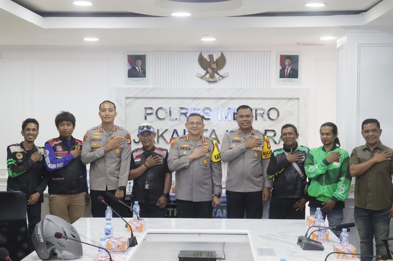 Jakarta Utara – Kapolres Metro Jakarta Utara, Kombes Pol Erick Frendriz, S.I.K., M.Si., memimpin pengukuhan Presidium Komunitas Ojek Online se-Jakarta Utara dalam rangka mendukung program Jaga Lingkungan dan Jaga Warga. Kegiatan ini berlangsung di Ruang Rapat Rupatama Lantai 3 Mapolres Metro Jakarta Utara, pada Kamis (25/9/2025) pukul 10.00 WIB.