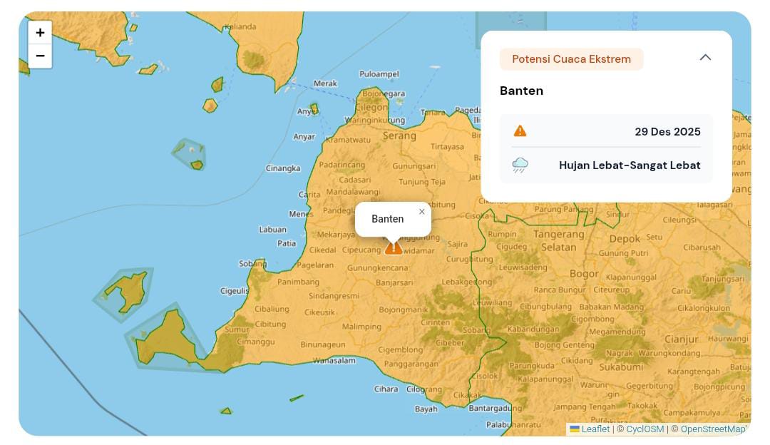 DinastiNews.Com|Serang – Menyikapi informasi terbaru dari Badan Meteorologi, Klimatologi, dan Geofisika (BMKG), Polda Banten mengimbau masyarakat untuk meningkatkan kewaspadaan terhadap potensi cuaca ekstrem yang diprakirakan terjadi di sejumlah wilayah Provinsi Banten pada Senin (29/12).
