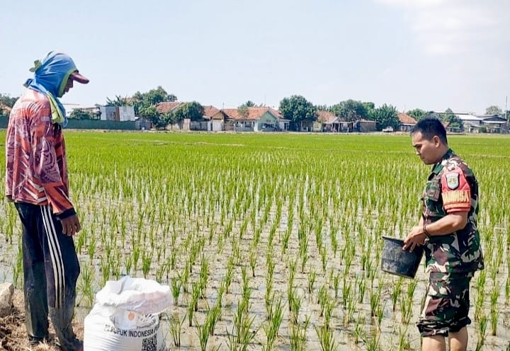 DinastiNews.Com|Kota Cirebon, — Dalam upaya mensukseskan program swadaya pangan nasional, Babinsa Kelurahan Pegambiran, Sertu Yanto, melaksanakan kegiatan pendampingan pertanian berupa pemupukan tanaman padi pada musim tanam ketiga (MT III). Kegiatan tersebut dilaksanakan di lahan persawahan RW 11 Petireman, Kelurahan Pegambiran, Kecamatan Lemahwungkuk, Kota Cirebon.