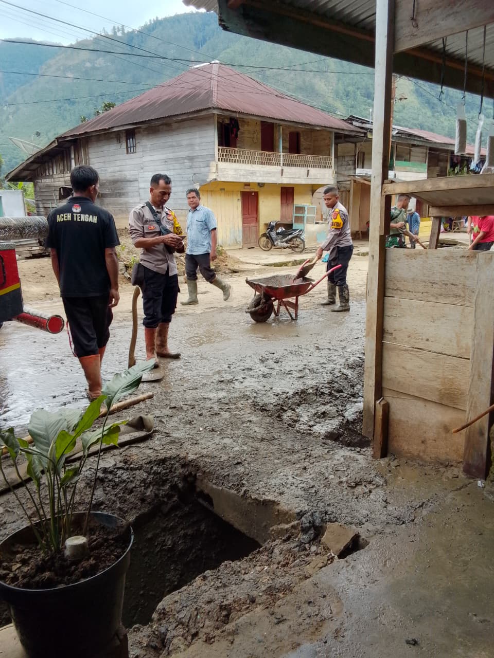Sejumlah pihak terlibat dalam kegiatan tersebut, di antaranya Bhabinkamtibmas dan personel Polsek Bintang Polres Aceh Tengah, personel Kompi A Yonif TP 854/DK, anggota Koramil 04 Bintang, petugas Pemadam Kebakaran, aparatur kampung, serta masyarakat setempat. Puluhan personel TNI–Polri bahu-membahu bersama warga membersihkan lumpur yang menumpuk di rumah-rumah warga.