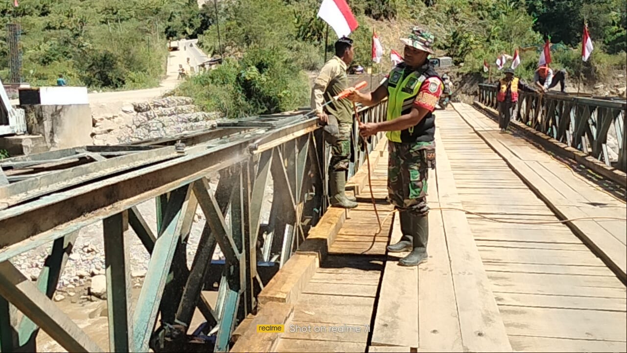 Pembangunan Jembatan Bailey tipe 2:1 dengan panjang bentang mencapai 51 meter kini telah memasuki tahap akhir. Hingga saat ini, progres pekerjaan telah mencapai 95 persen. Seluruh material jembatan disuplai oleh Yonzipur 16, yang juga menjadi unsur utama dalam pelaksanaan konstruksi di lapangan.