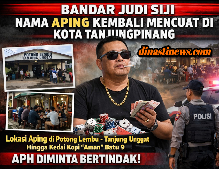 Dinastinews.com – Tanjungpinang Nama Aping kembali mencuat dalam perbincangan warga Kota Tanjungpinang. Sejumlah warga menyebut Aping diduga kuat terlibat sebagai bandar judi jenis siji yang beroperasi secara tertutup di wilayah Potong Lembu, Tanjung Unggat, hingga kawasan Batu 9. Jumat, 23 Januari 2026.