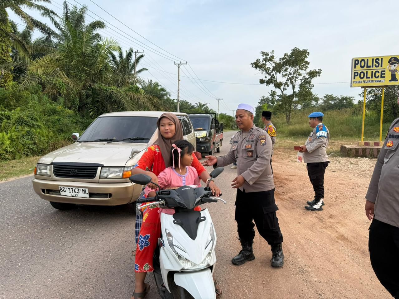 Dnc. Sarolangun – Dalam suasana penuh berkah bulan suci Ramadhan 1447 Hijriah, jajaran Polres Sarolangun kembali menunjukkan kepeduliannya kepada masyarakat melalui kegiatan sosial pembagian takjil. Kegiatan tersebut dilaksanakan pada Minggu (1/3/2026) sekira pukul 17.30 WIB di Jalan Lintas depan Mapolsek Pelawan Singkut, Kabupaten Sarolangun.
