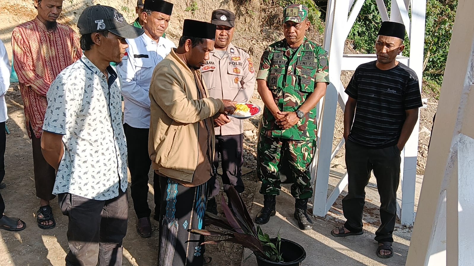 Prosesi peusijuk berlangsung dengan pembacaan doa dan penaburan beras padi serta tepung tawar sebagai simbol harapan akan keselamatan dan keberkahan. Setelah prosesi selesai, masyarakat bersama aparat yang hadir turut meninjau langsung kondisi jembatan gantung tersebut.