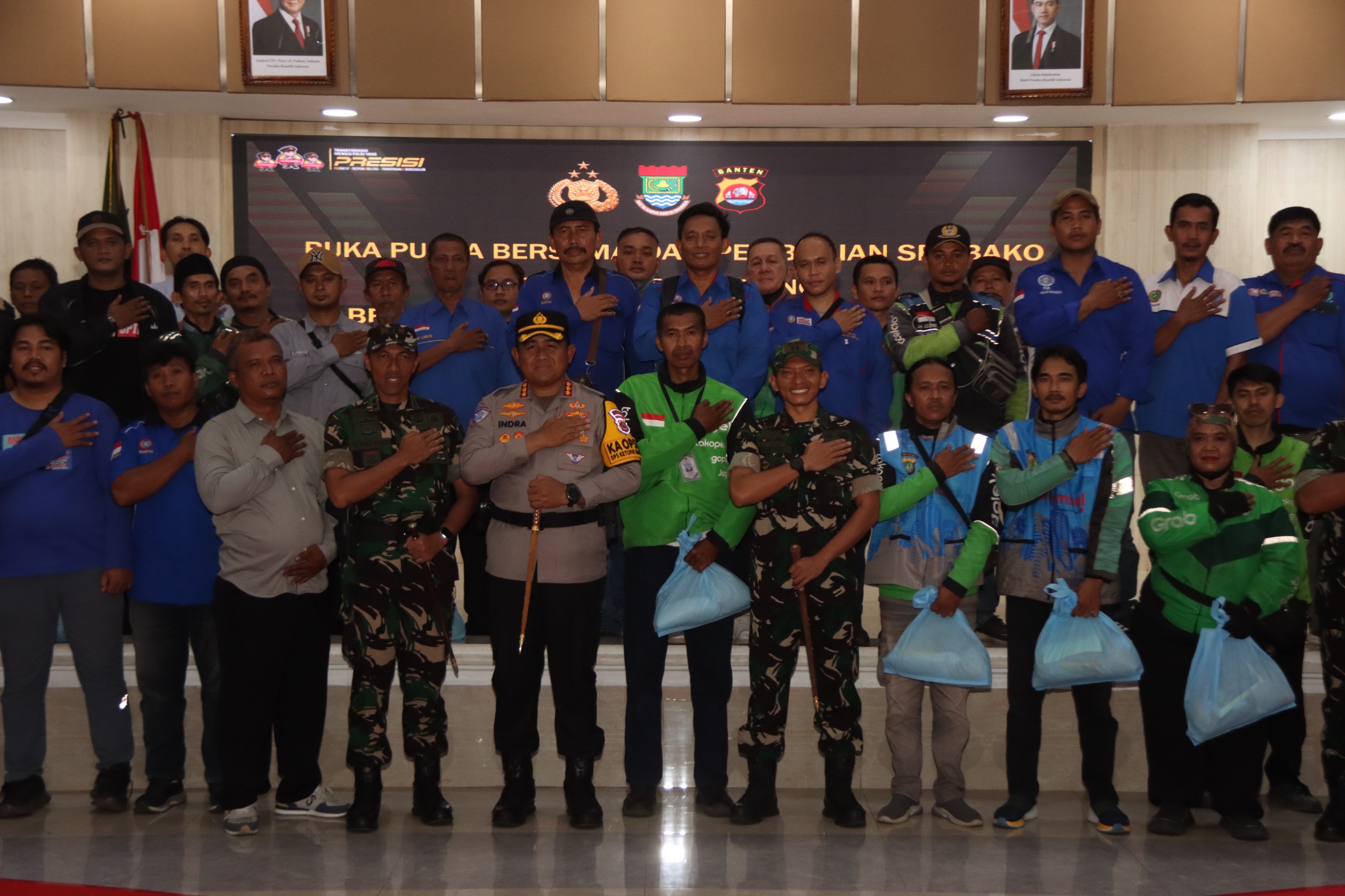 DinastiNews.Com|Polresta Tangerang membagikan bantuan paket sembako kepada para pengemudi ojek online (ojol) dan ojek pangkalan (opang) di Gedung Serba Guna (GSG) Puspemkab Tangerang (Puspemkab), Kamis (12/3/2026).