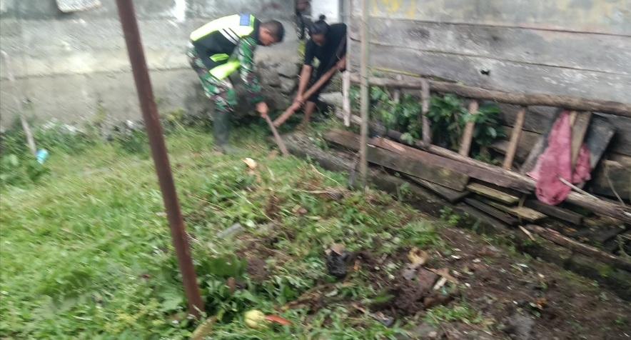 Kegiatan karya bakti tersebut dilakukan bersama warga sebagai bentuk kepedulian Babinsa terhadap kebersihan dan kenyamanan lingkungan desa binaan.