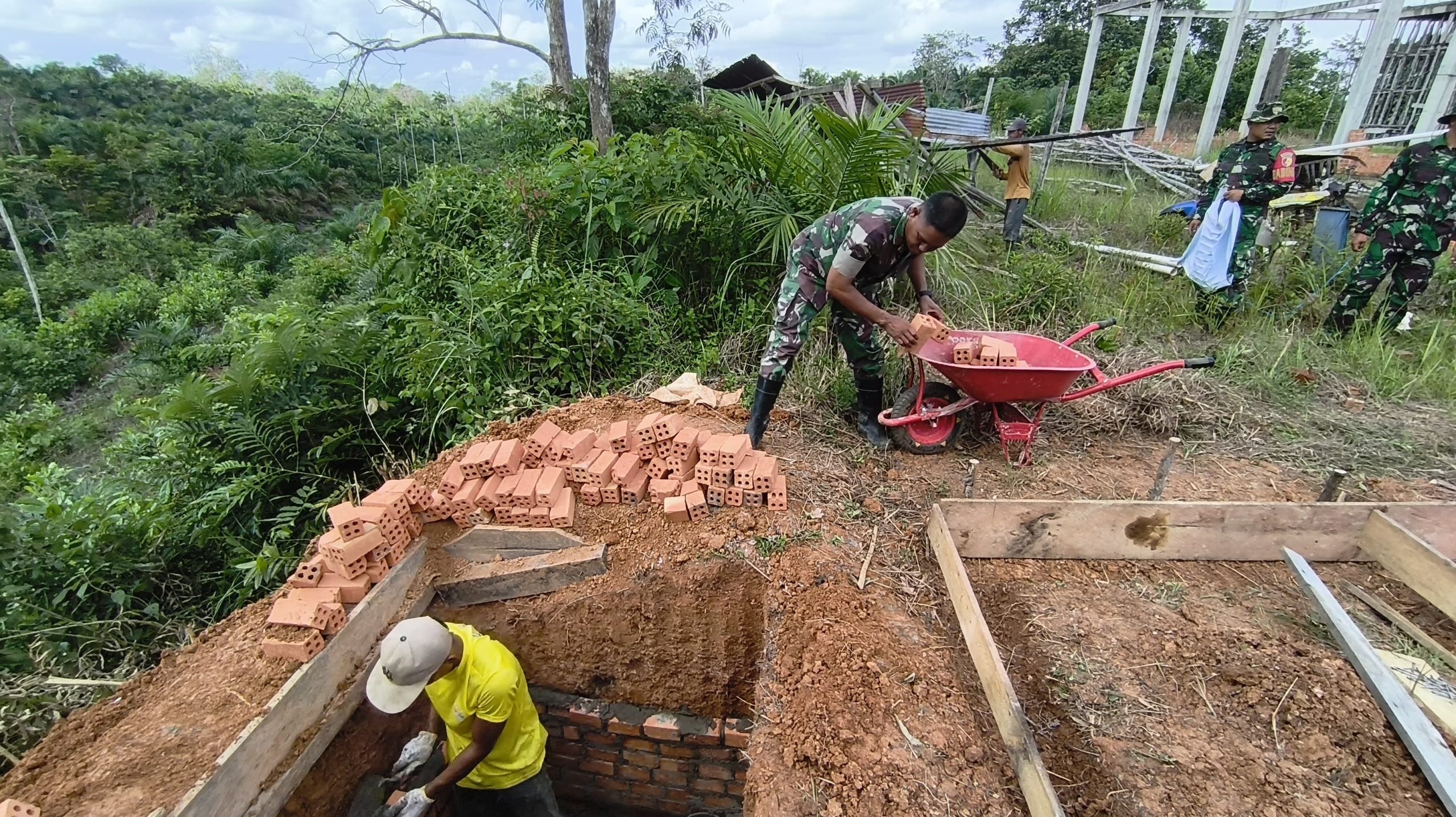 Anggota Satgas TMMD Ke-128 Kodim 0420/Sarko Gotong Royong Bangun MCK di Desa Seko Besar